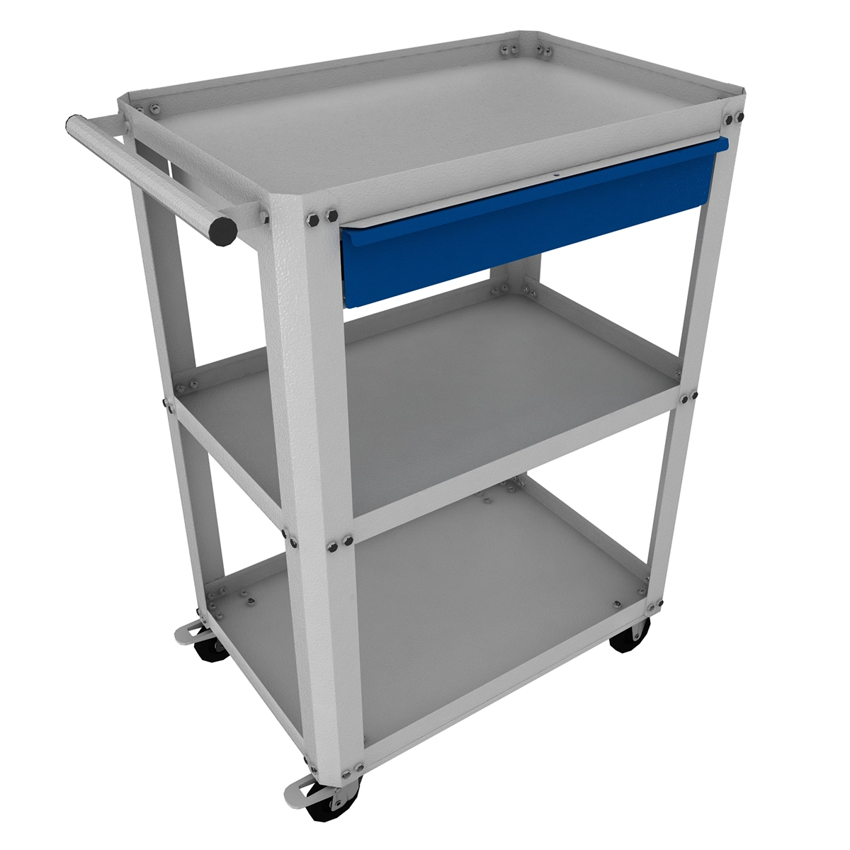– Capacidade de carga distribuída de 15 kg por gaveta. Capacidade total do carrinho 120kg distribuídos.